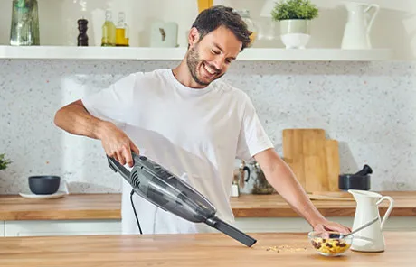 Curăță rapid firimiturile și praful zilnic, fără să mă chinui.