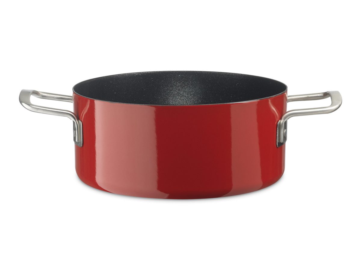 Invelisul emaliat si forma contemporana ii confera cratitei un aspect exterior atragator.