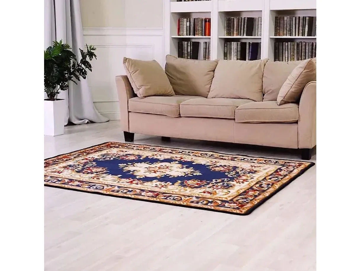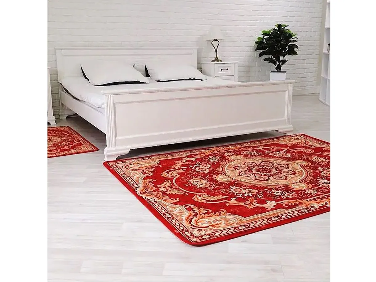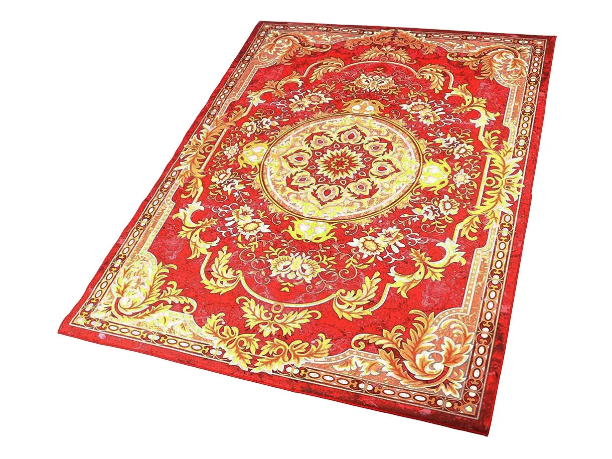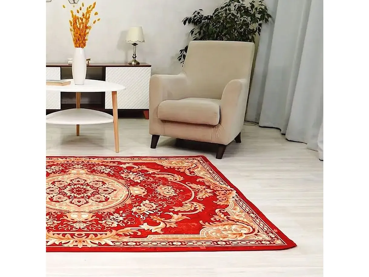 Covor “Golden Age” este disponibil în două dimensiuni – 70×120 cm și 150×200 cm – și în două culori elegante: roșu intens și albastru profund. Astfel, poți alege varianta care se potrivește cel mai bine nevoilor și stilului casei tale.