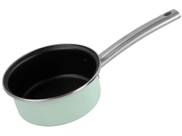 Cratita pentru sosuri este fabricata din otel vitrificat. Este material durabil care se incalzeste rapid si uniform. Partea exterioara este acoperita cu email rezistent, tratat la 820°C. Interiorul are un strat antiaderent pe baza de apa, fara substante nocive (fara PFOA).