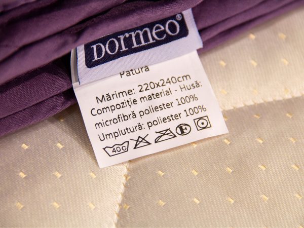 Exteriorul este realizat dintr-o tesatura delicata si fina, extrem de placuta la atingere. Interiorul este umplut cu fibre de poliester, asemanatoare celor folosite in cele mai bune perne si pilote Dormeo. Astfel, cuvertura ramane usoara, moale, respirabila si igienica. In plus, previne supraincalzirea, transpiratia sau aparitia mirosurilor.