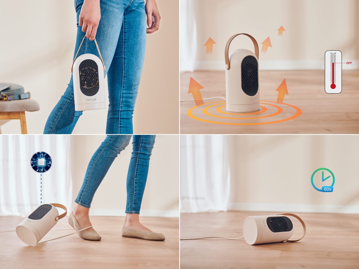 Acest dispozitiv pentru incalzire este solutia perfecta pentru incaperile reci din casa sau de la oficiu, aducand rapid mai multa caldura, astfel incat sa puteti lucra sau sa va relaxati cu mai mult confort, fara a irosi energie. Cu putin peste 20 cm inaltime, este incapator aproape oriunde, iar cu o curea pentru transportare si greutatea de numai 580 g il puteti muta rapid si usor, folosind un singur dispozitiv pentru incalzire oriunde va aflati acasa.