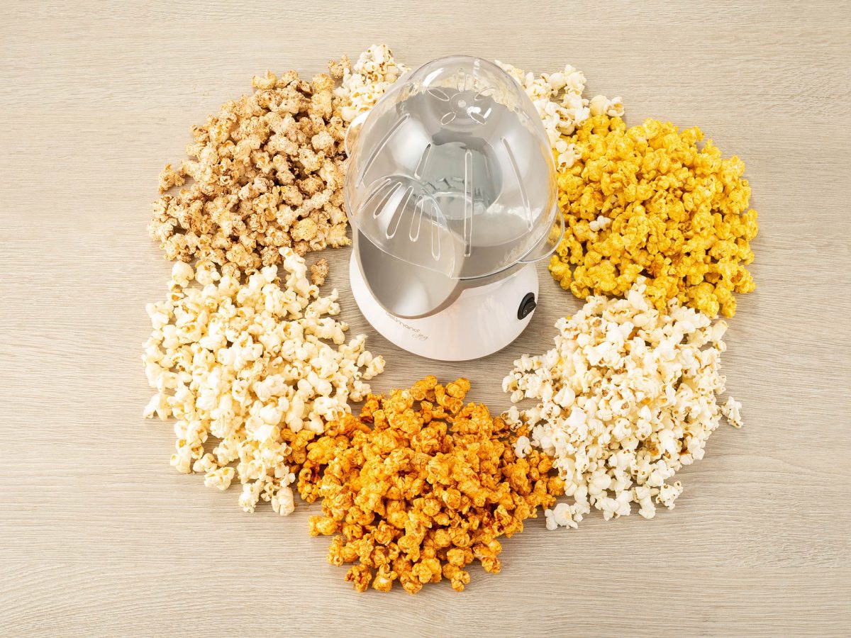 Dispozitivul pentru prepararea floricelelor de porumb are puterea de 1200 W, acesta gateste pop-corn crocant si gustos cu ajutorul aerului fierbinte, fara gram de ulei. Doar adaugati boabele de porumb in aparat si uitati de pungile pentru pop-corn pe care este nevoie sa le preparati in microunda si care contin multi conservanti.