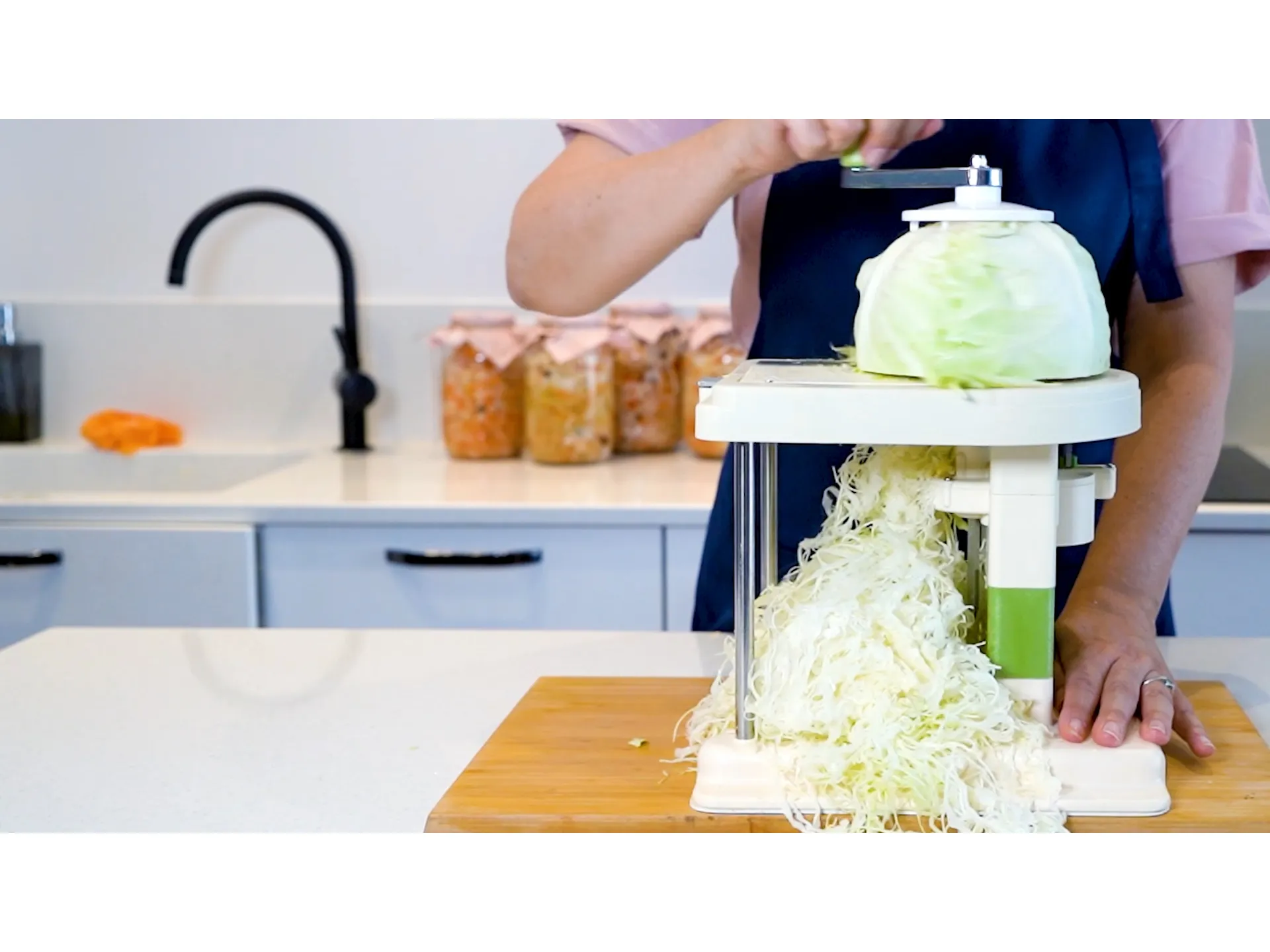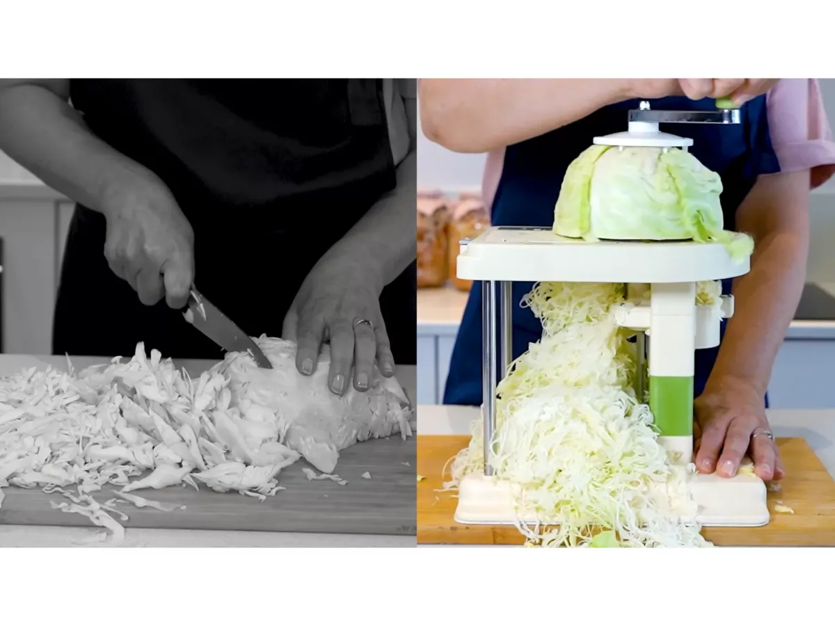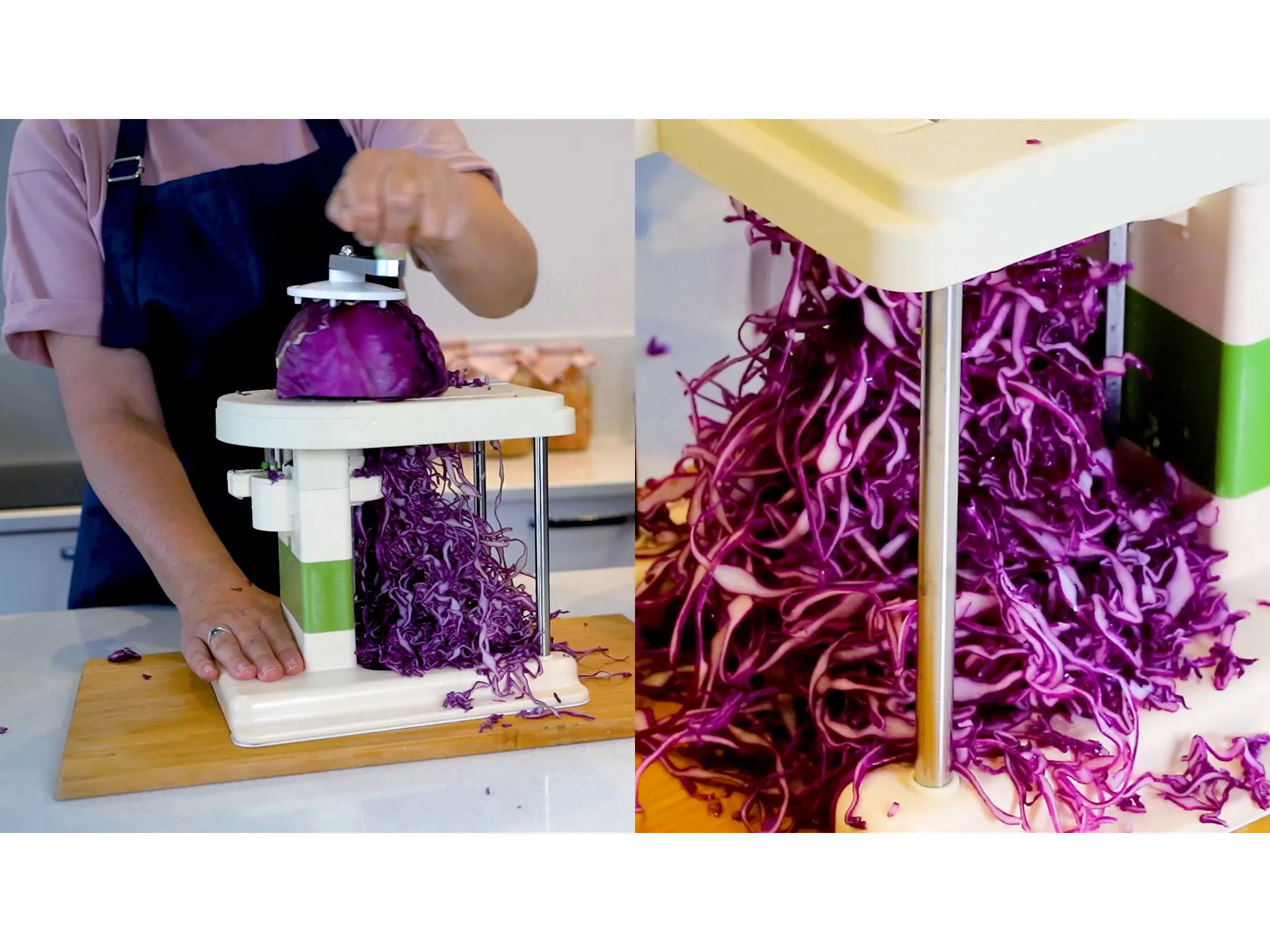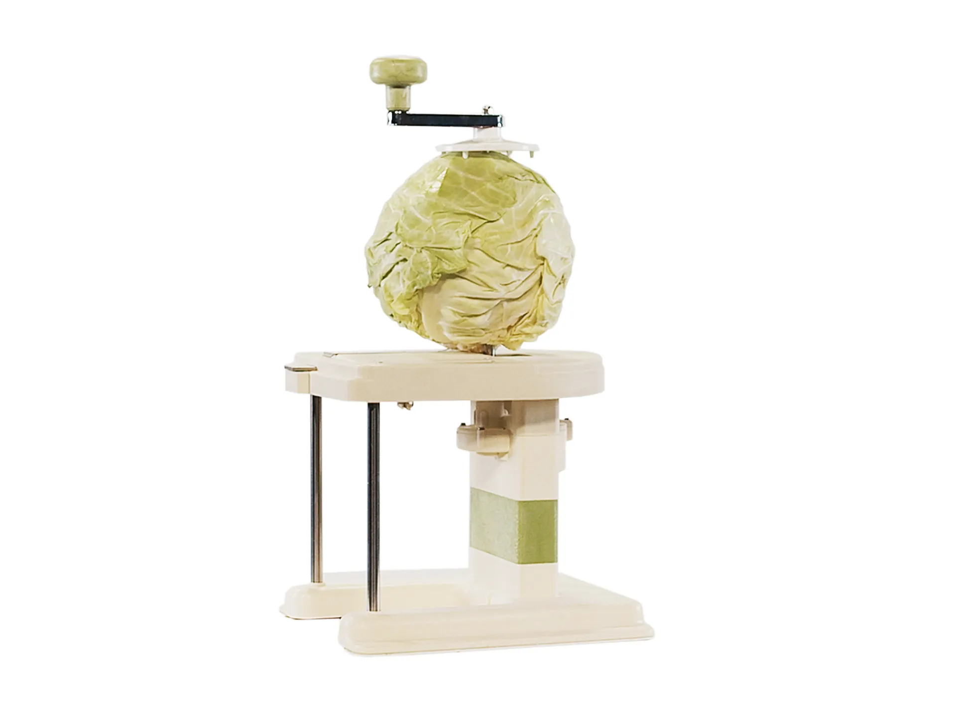- Usor de folosit. Fixati capul de varza, setati latimea de taiere dorita, rotiti butonul. Gata!