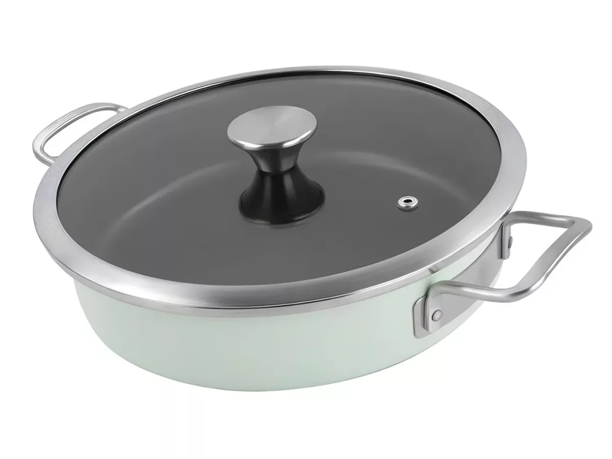 Tava rotunda Delimano Nordic cu diametrul de 28 cm si capacitatea de 3 litri este un ajutor indispensabil in bucataria moderna. Datorita combinatiei de materiale de calitate si designului ergonomic, poti pregati o gama larga de retete: tocanite, lasagna, gulas, supe sau chiar prajituri. In plus, tava este compatibila atat cu plita, cat si cu cuptorul. Dupa gatire, o poti aseza direct pe masa – solutie practica si eleganta in acelasi timp.