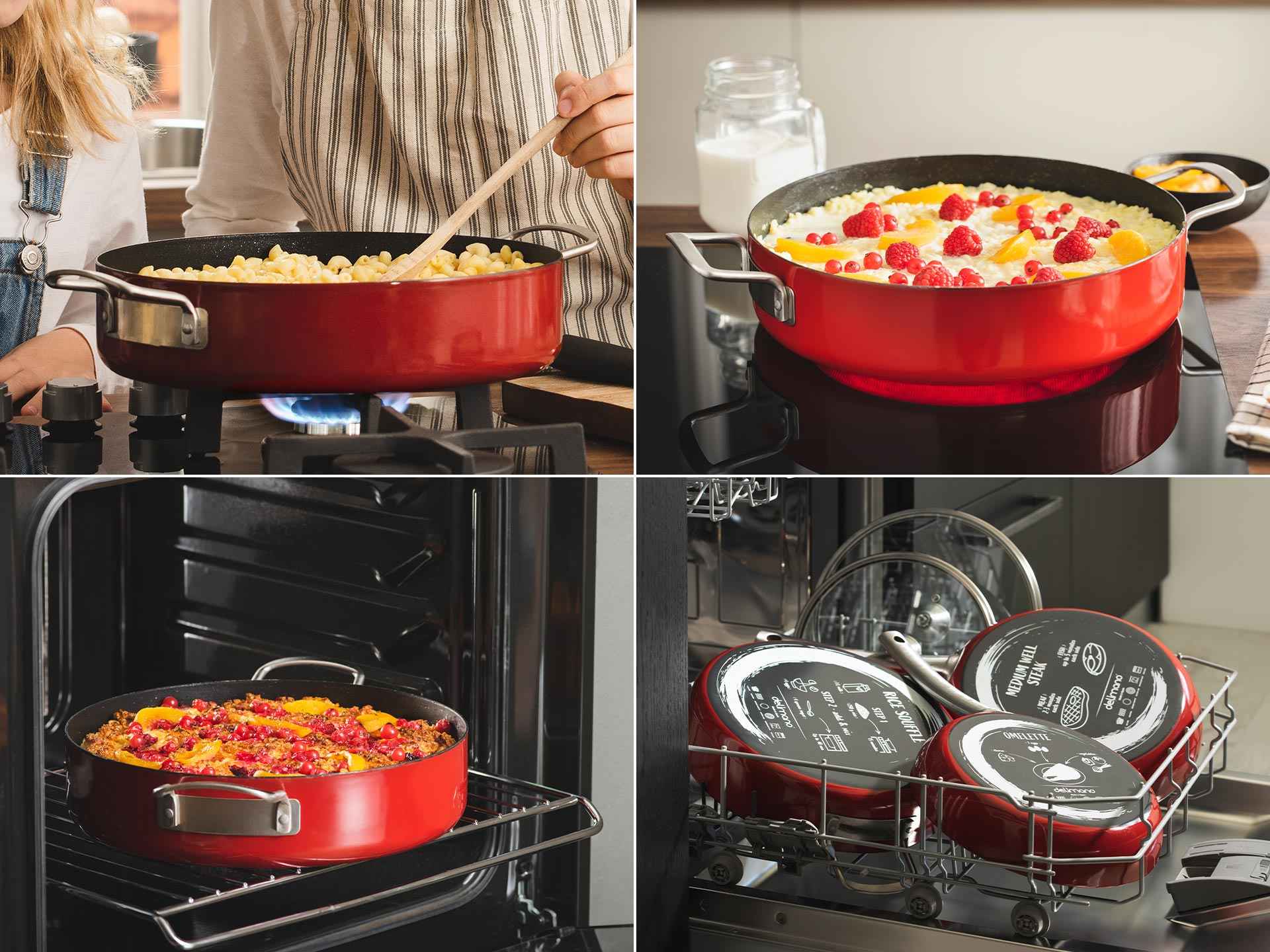 - Combinatia ideala dintre materiale contemporane si cele traditionale va ofera ocazia sa utilizati vasele pe toate tipurile de plite.