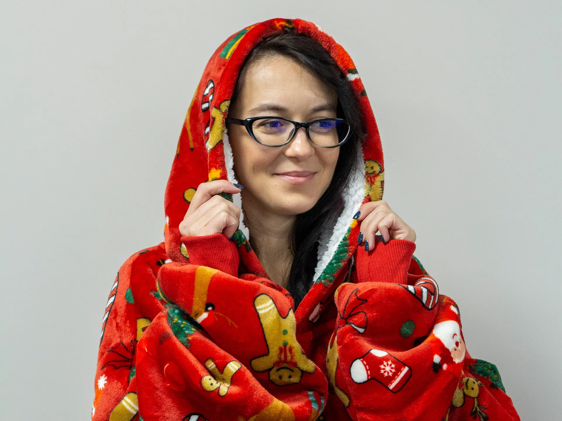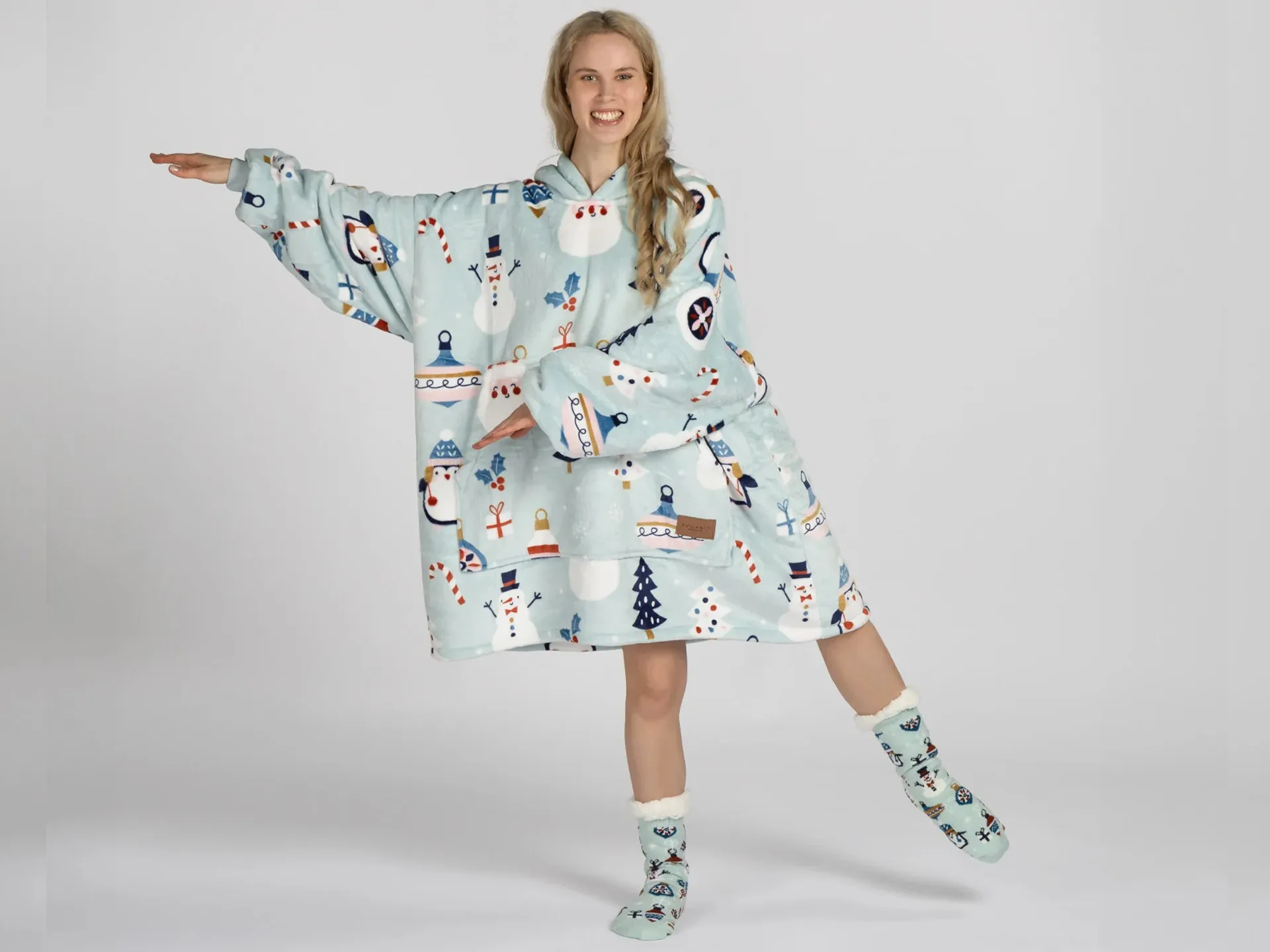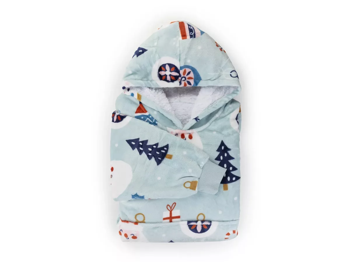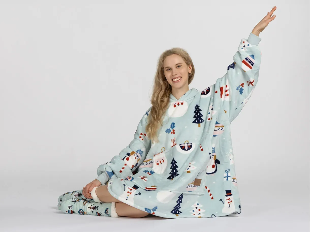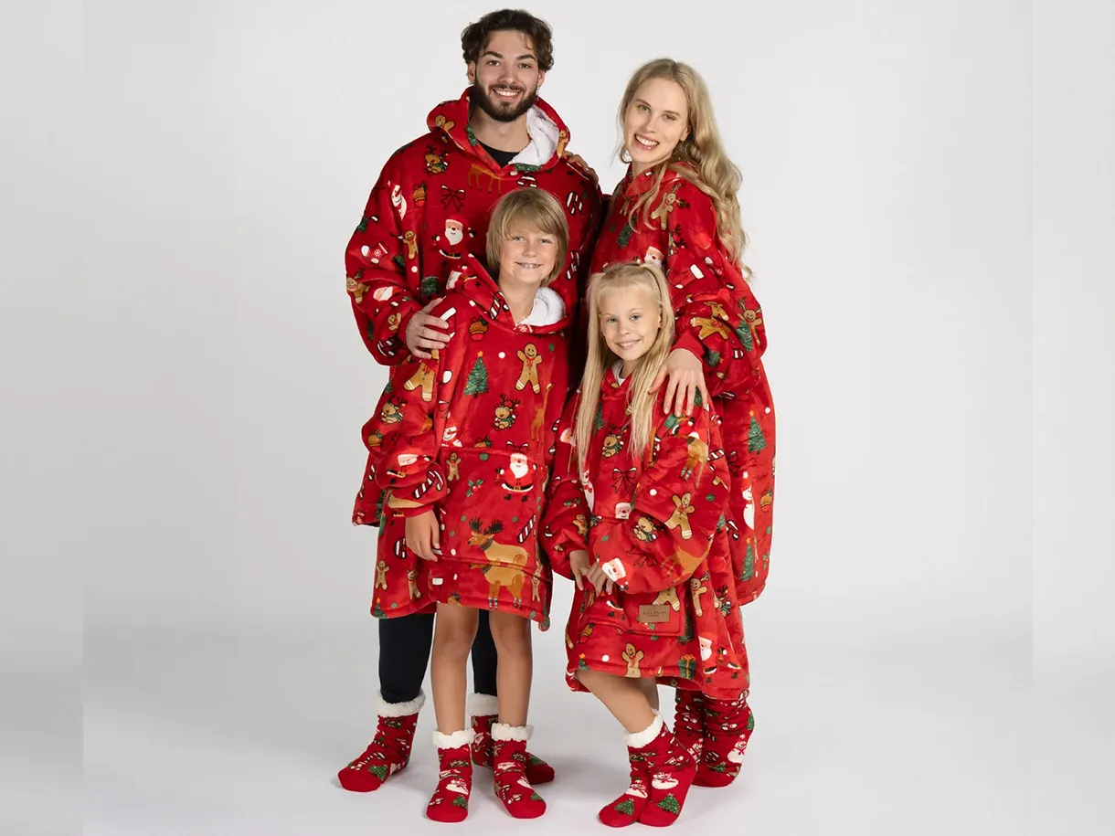 Setul include o pereche de șosete moi cu talpă antiderapantă. Acest pachet este alegerea perfectă pentru a fi oferit celor dragi. Hanoracul cu glugă se potrivește atât adulților, cât și copiilor, iar mărimea universală îl face potrivit pentru întreaga familie. Culorile vii și designul modern vor aduce buna dispoziție și vor transforma fiecare seară într-un moment special.