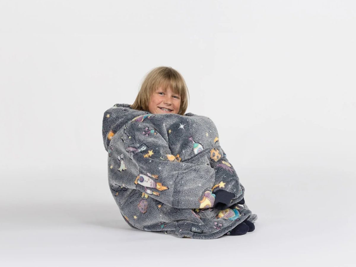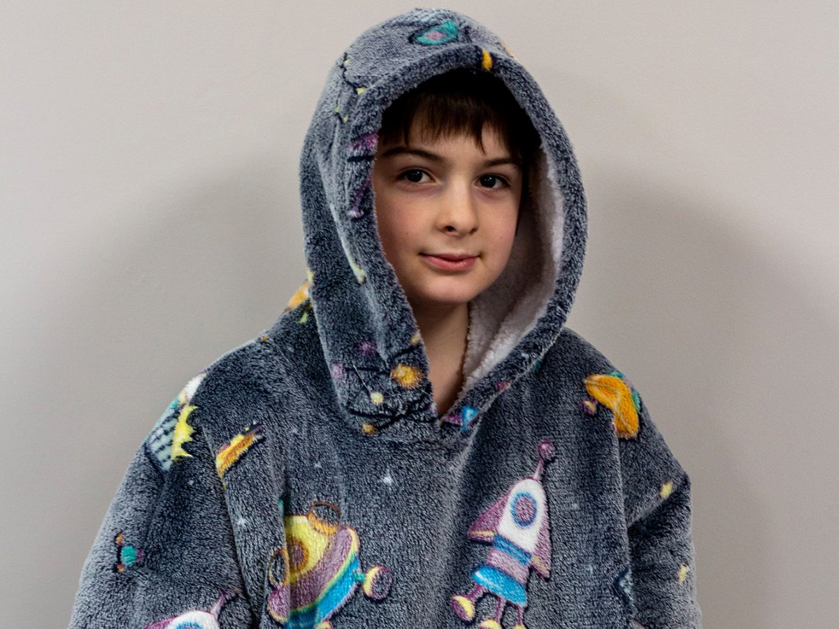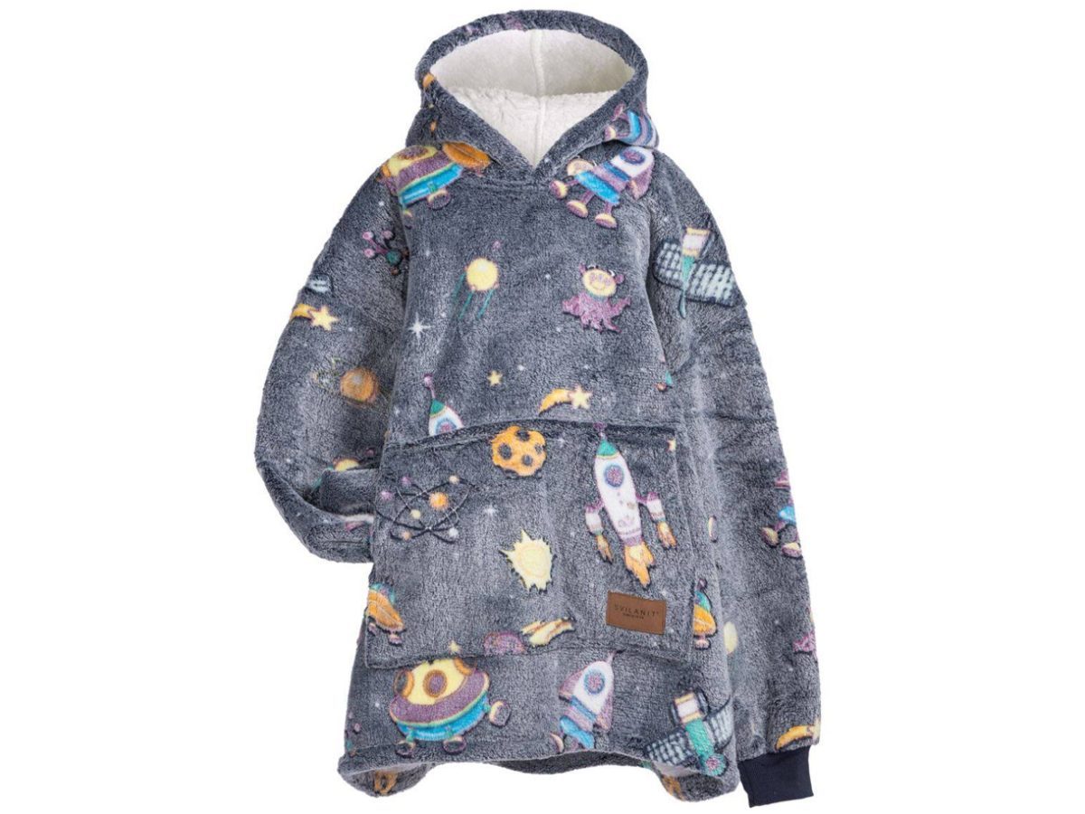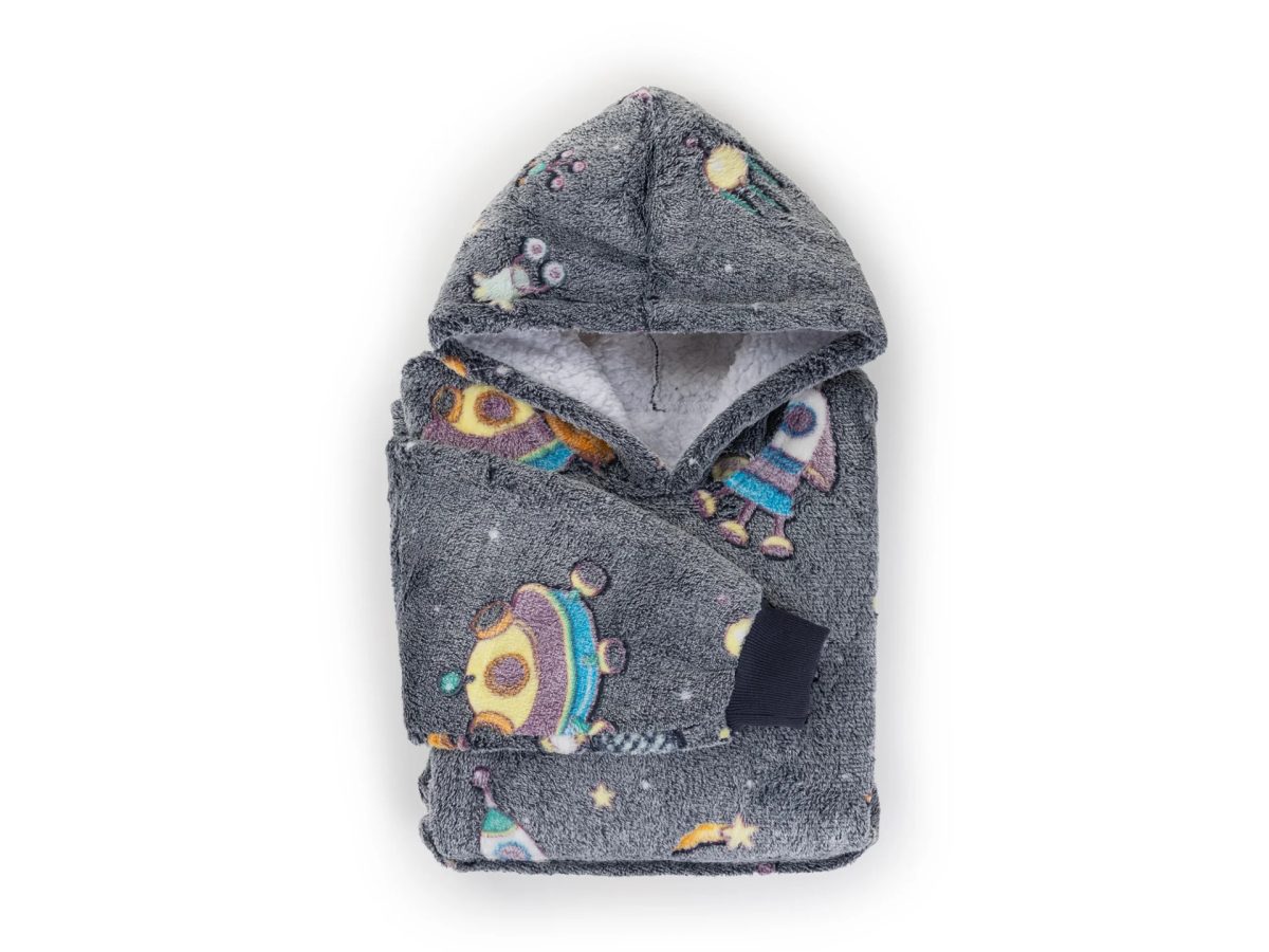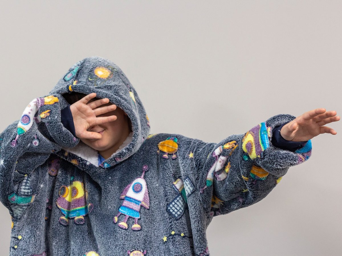 Lasati copiii sa-si ia ramas bun de la paturile traditionale si bucurati-va de cea mai calda patura cu maneci! Le poate fi cald in cateva momente in timp ce citesc o carte, se joaca sau studiaza, beau o cacao delicioasa sau urmaresc desenul animat preferat. Si o idee in plus? Este util si pentru picnicuri de seara sau camping.