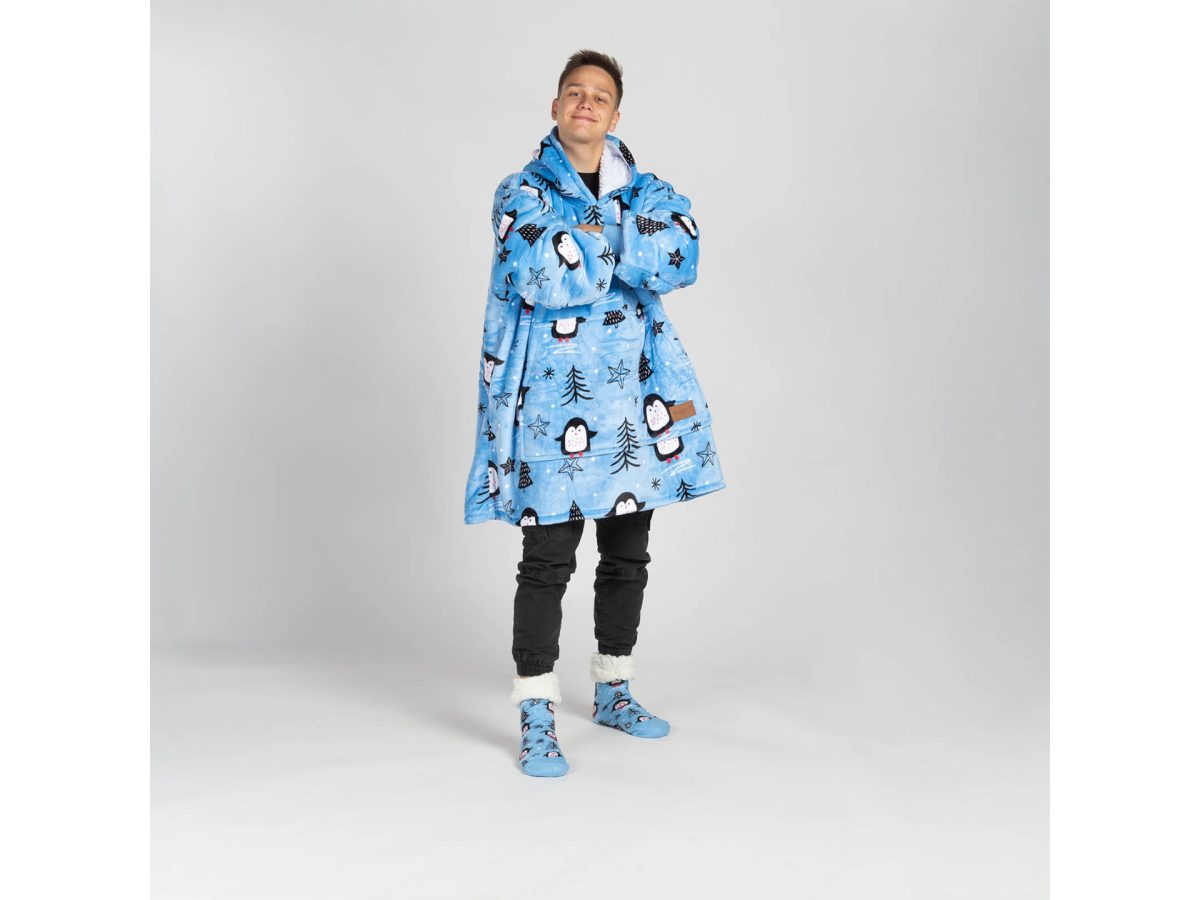 Materialul interior sherpa retine perfect caldura si iti tine de cald in orice moment. Tesatura exterioara de plus este si mai moale la atingere si gata pentru imbratisari. Patura cu maneci si gluga este ideala ca si cadou pentru toti acei oameni pe care ii iubesti cel mai mult.