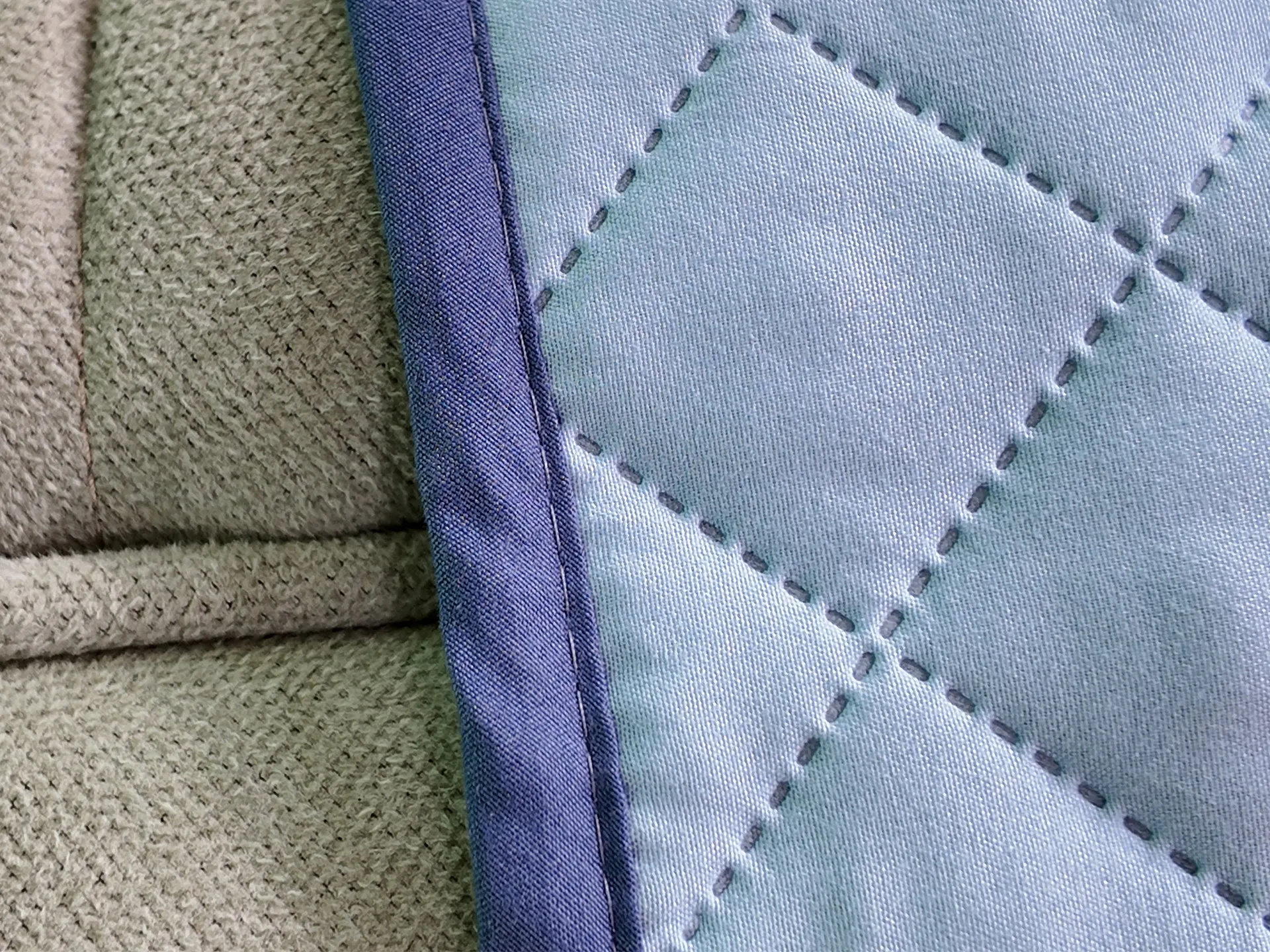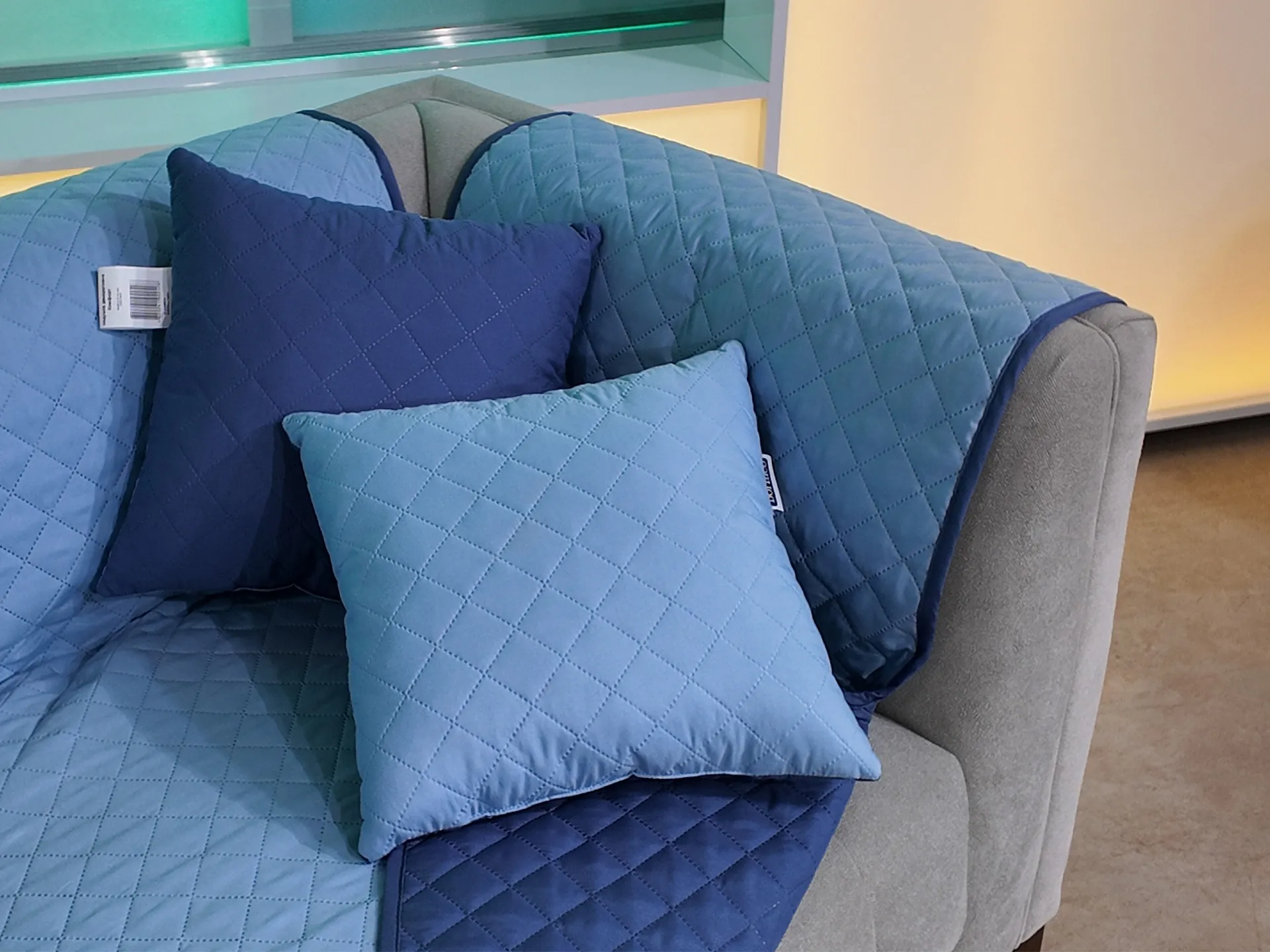 Husa este confectionata din microfibra rezistenta, cu cusatura in forma de romb. Designul adauga un aspect elegant si mentine forma dupa spalari repetate. Umplutura din poliester o face moale si placuta la atingere. In plus, materialul previne alunecarea si ajuta husa sa ramana bine fixata.