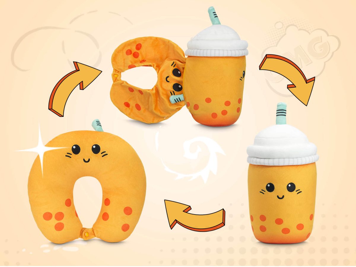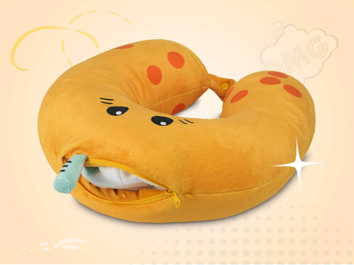 - Design 2in1: Se transforma din jucarie in perna pentru gat in cateva secunde;