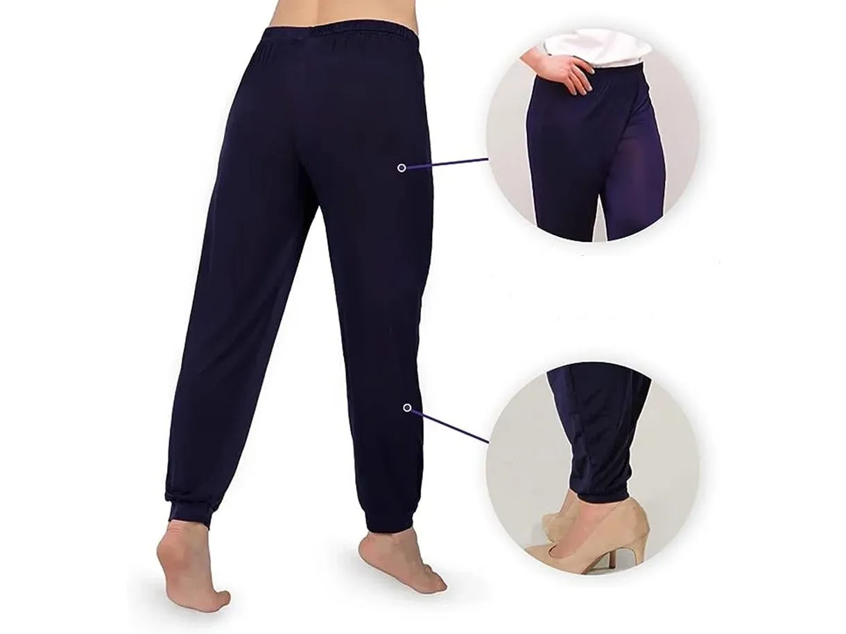 Pantaloni pentru dame „Breeze” sunt confecționați din mătase artificială (poliester) – un material ușor și respirabil, care permite circulația aerului și nu limitează mișcarea. Sunt disponibili în mărime XL (talie 98–110 cm, șolduri 124–136 cm). Lungimea interioară a cracului este 67 cm la XL.