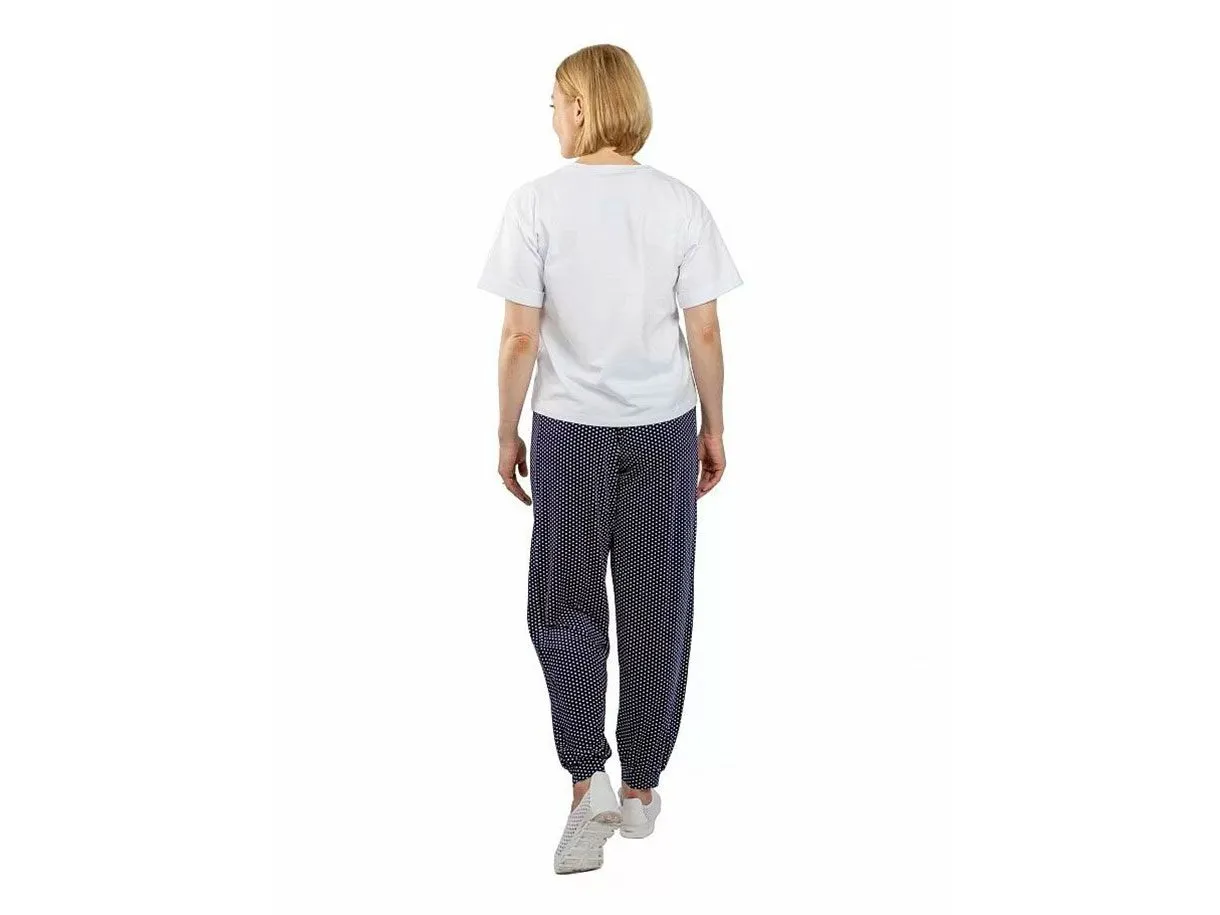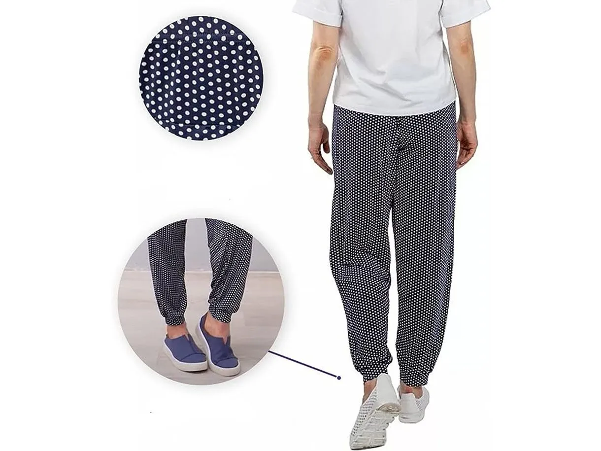 Modelul se combină perfect cu tunici, bluze, topuri sau cămăși. Arată bine atât cu pantofi cu toc, cât și cu încălțăminte cu talpă joasă. Banda elastică lată din talie nu strânge, asigurând o fixare perfectă, iar manșetele lejere oferă un plus de libertate și stil.