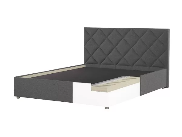 Patul Dormeo Eva este conceput pentru două persoane și suportă o greutate de până la 240 kg. Structura cu lamele la distanță de 6,5 cm asigură susținerea uniformă a saltelei și o distribuție corectă a greutății. Salteaua este integrată în cadru cu 3 cm, prevenind alunecarea în timpul somnului.