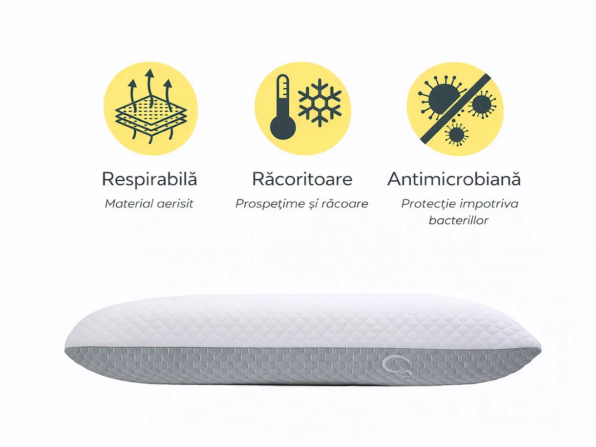 Prin urmare, perna reversibilă cu carbon din bambus și gel de răcire combină tehnologii avansate și materiale inovatoare pentru un somn confortabil.