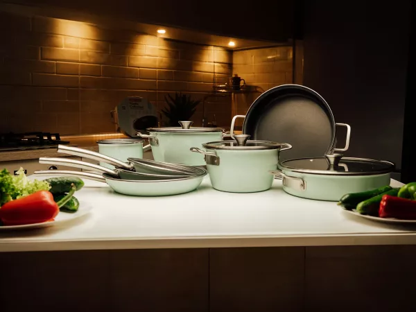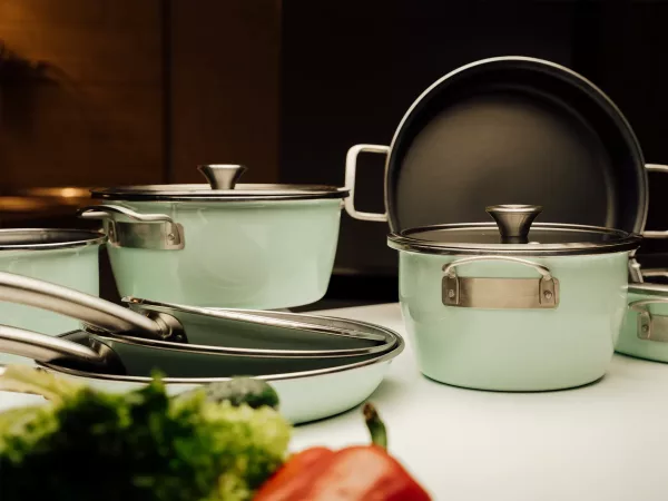 Emailul folosit la vasele Delimano este recunoscut drept unul dintre cele mai rezistente si sigure materiale. Cu acest set, poti avea incredere in calitatea si siguranta bucatariei tale.