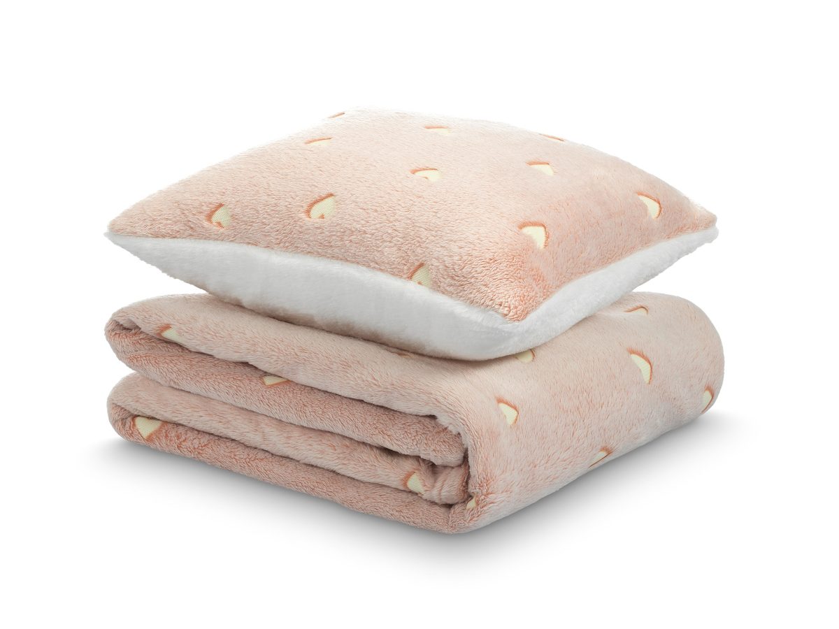 Setul pentru copii este potrivit nu doar pentru somn, ci si pentru alte situatii. Cuvertura cu dimensiunea de 130×190 cm poate fi folosita ca o plapuma suplimentara pe pat, ca un covor de joaca pe podea, in masina sau la petreceri in pijamale. Perna de 37×37 cm, cu un design reversibil, adauga confort si stil – o alegere excelenta pentru relaxare sau ca element decorativ.