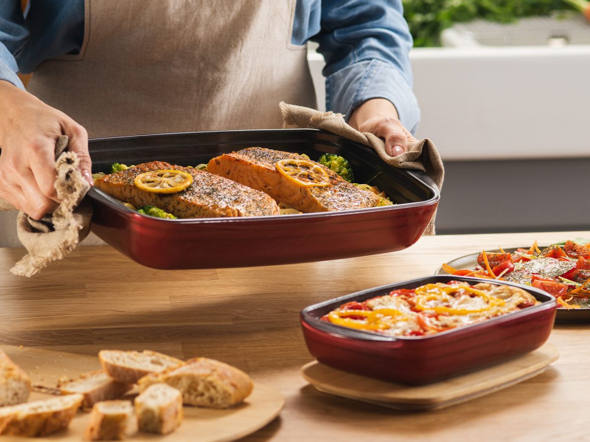 Destul de mari pentru a prepara tocana sau alte bucate pentru toata familia – tavele din sticla de calitate superioara asigura mentinerea caldurii pe o perioada indenlungata de timp, precum si distribuirea uniforma a temperaturii. De asemenea, le puteti spala in masina de vase! Cum sa nu te indragostesti de ele?