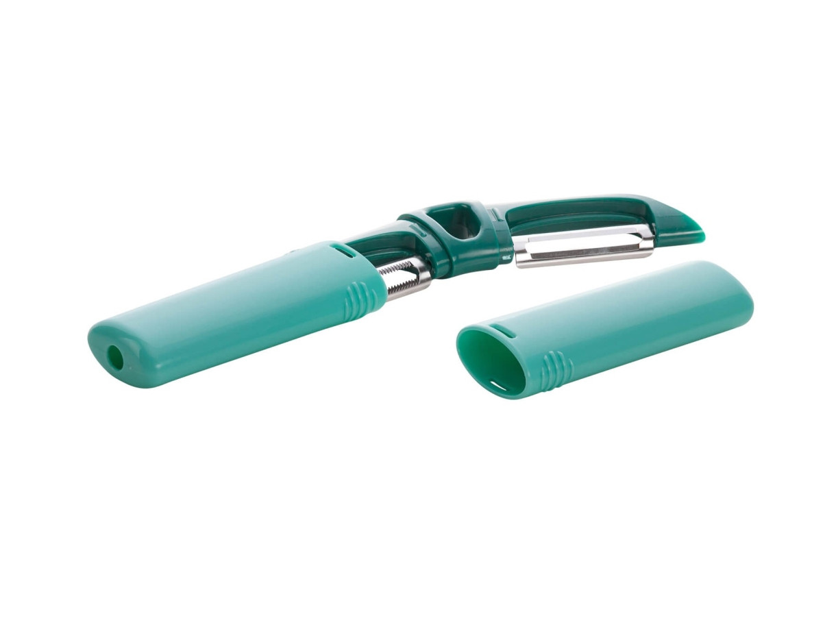 Doua lame diferite ale curatatorului sunt ascutite pe ambele parti pentru o utilizare rapida. Lama neteda este perfecta pentru curatarea cartofilor, castravetilor sau pentru felierea fina a ingredientelor pentru carpaccio de legume. Lama zimtata este potrivita pentru curatarea fructelor si legumelor cu coaja foarte subtire, cum ar fi rosiile, ardeii etc.