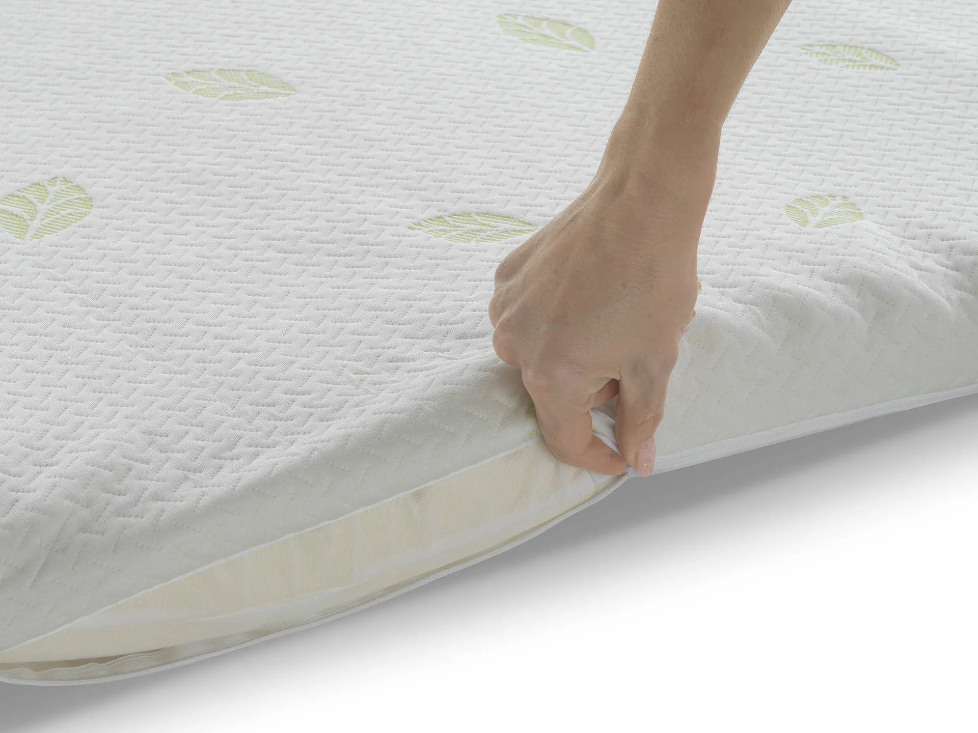 Husa este realizată din fibre naturale Tencel®, obținute din lemn de eucalipt. Acest material este moale, respirabil și absoarbe umezeala. Reglează temperatura în timpul somnului și protejează împotriva acarienilor și bacteriilor. Sistemul Essential™ oferă protecție împotriva fungilor și mirosurilor neplăcute, fără chimicale și alergeni.
